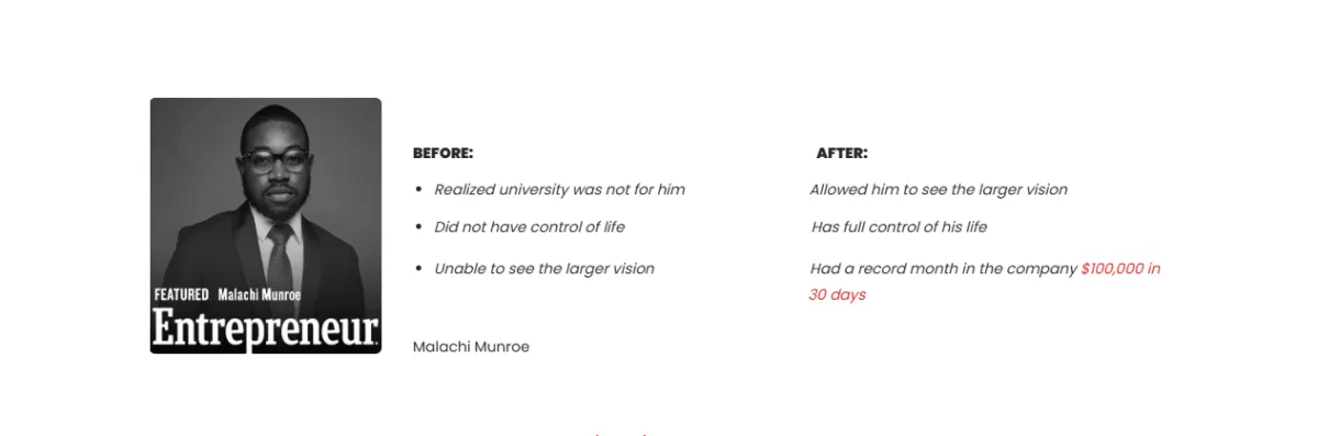 "I was barely making enough money to pay my bills, racking up debt, and driving a beat up old car. In conversations I was very self-deprecating and had a negative attitude toward my future. "