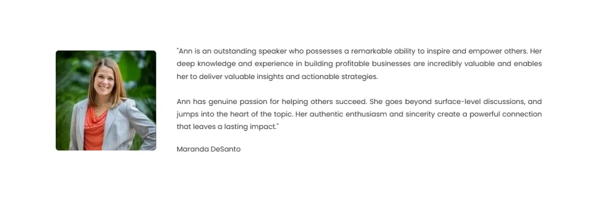 She is a respected leader, speaker, author, and coach known for her ability to inspire and drive real results. When you learn from Ann, you're learning from the best.
